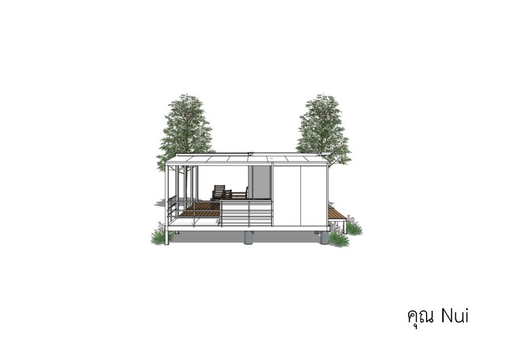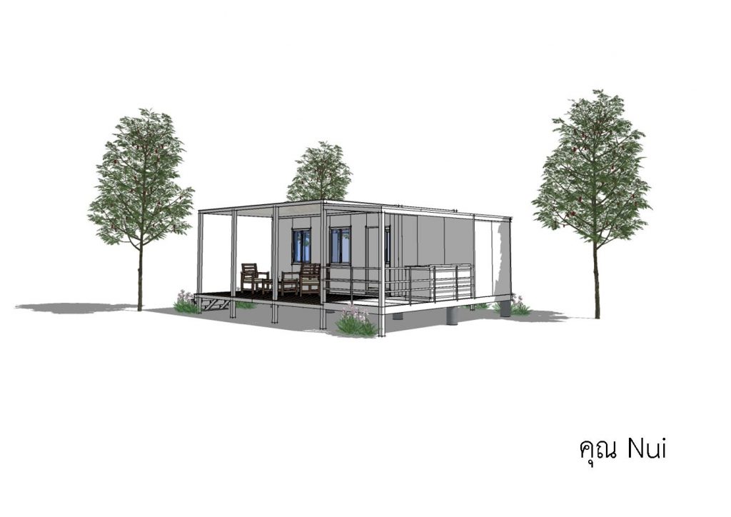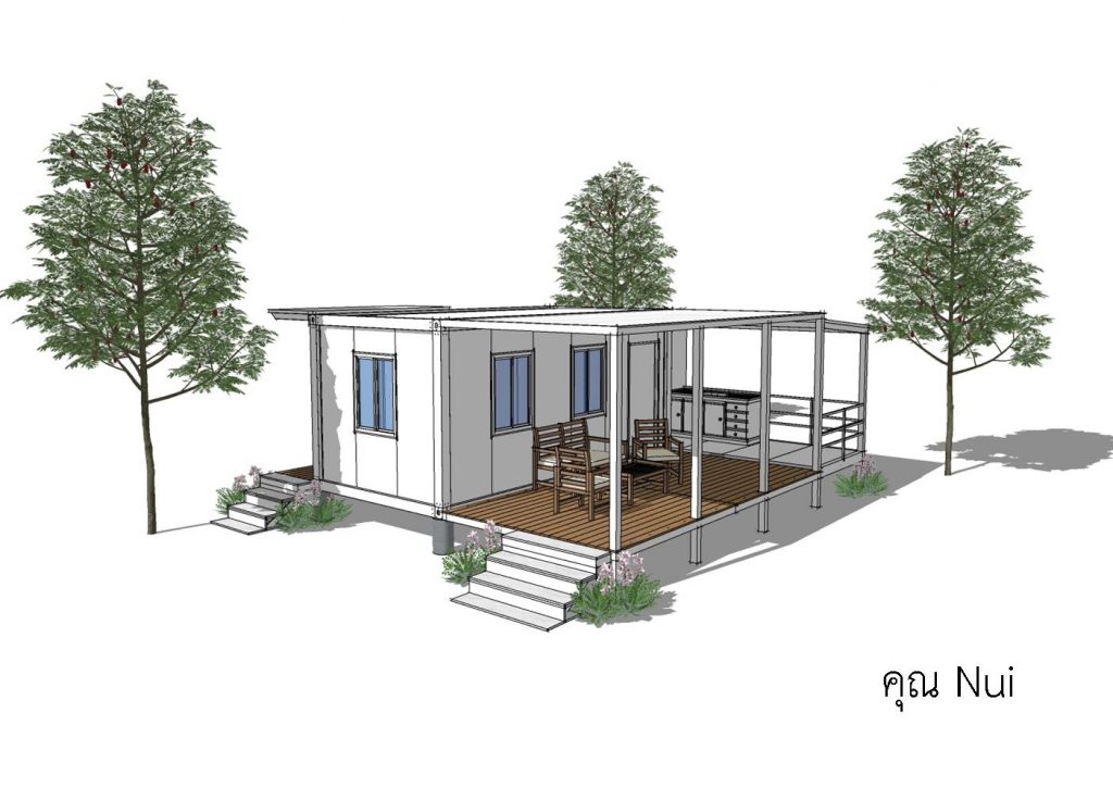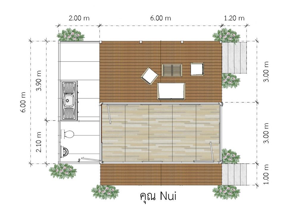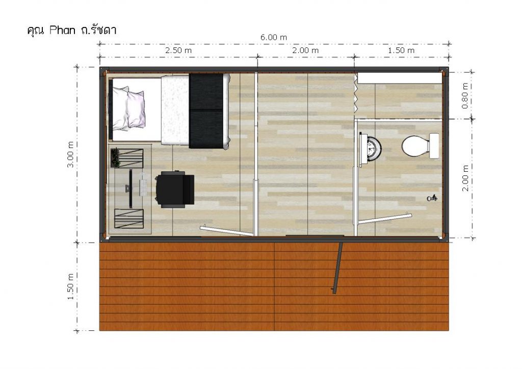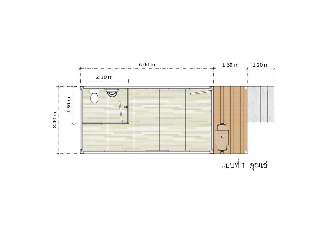 บ้าน6*3 ห้องน้ำนอกบ้าน3*2 ระเบียงไม้6*3 กันสาด