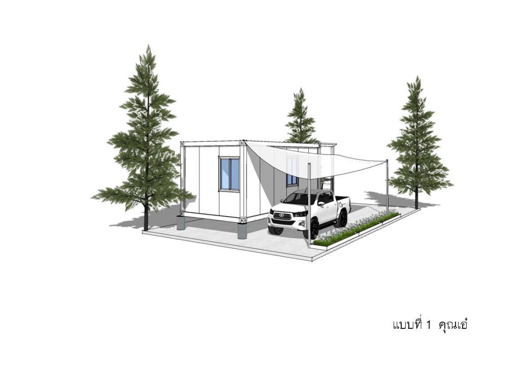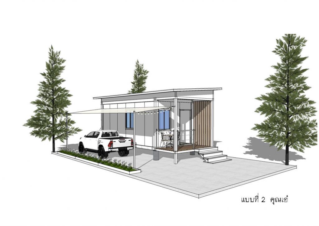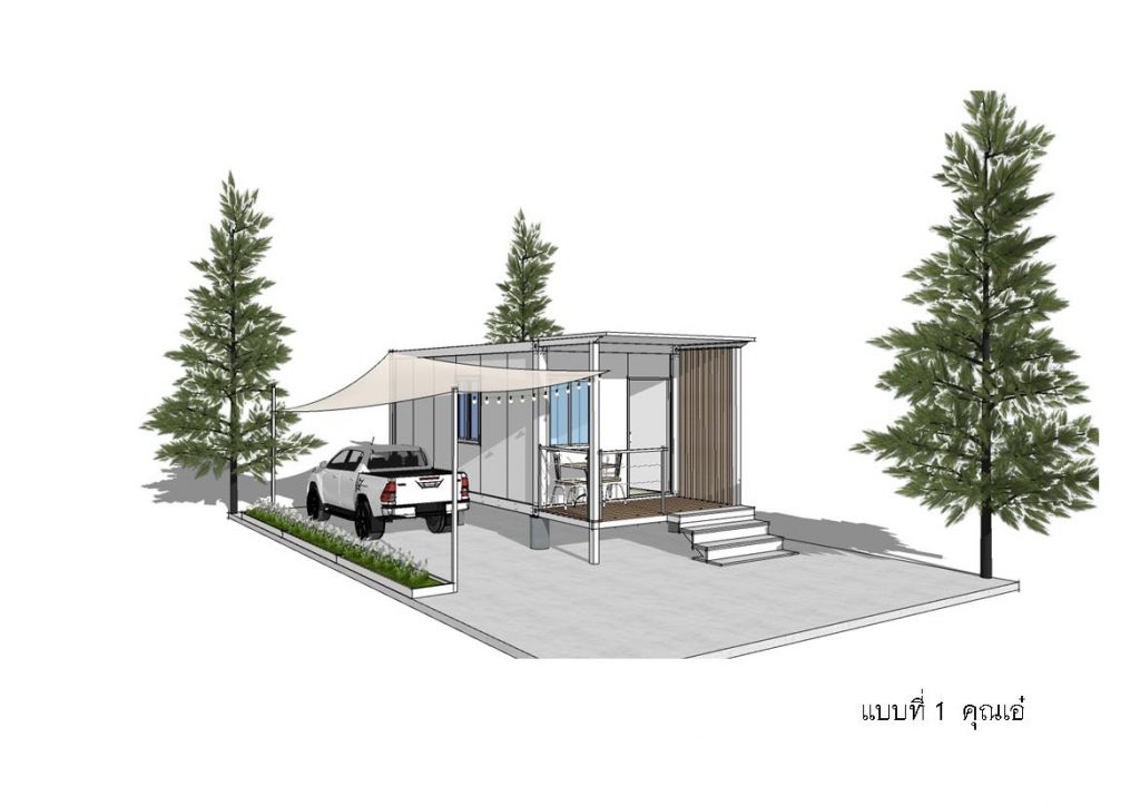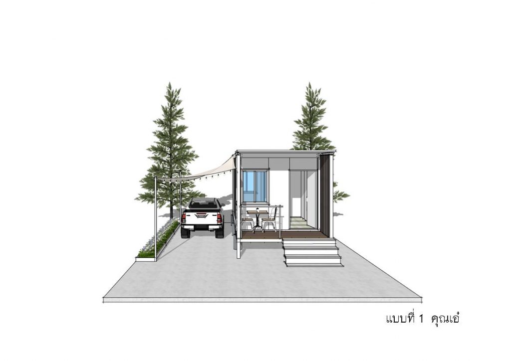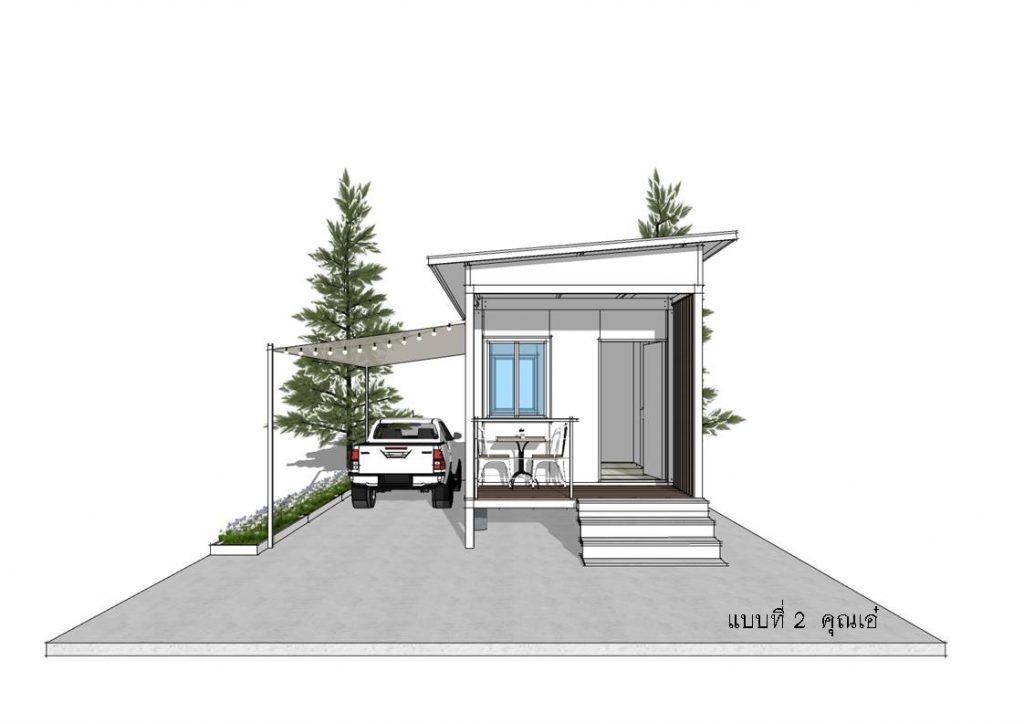 6*3 มีระเบียงด้านหน้า + กันสาด+จอดรถด้านข้าง ยกพื้นสูง50ซม.