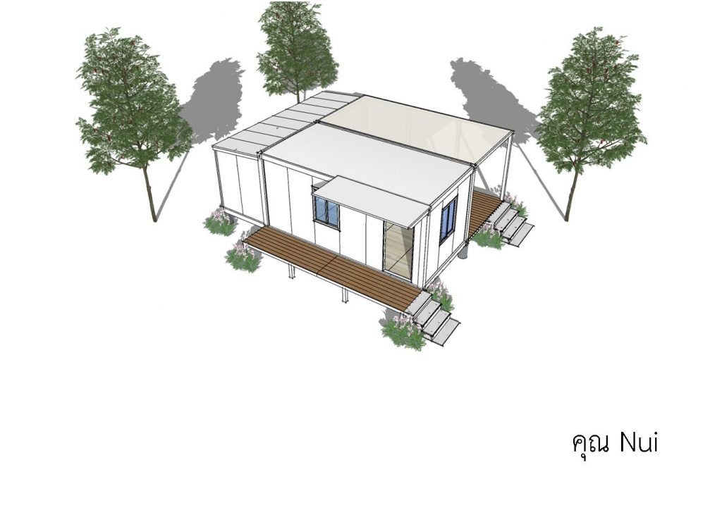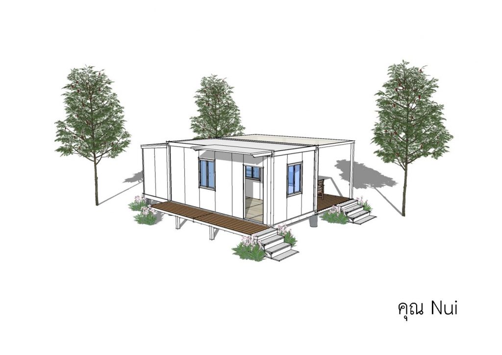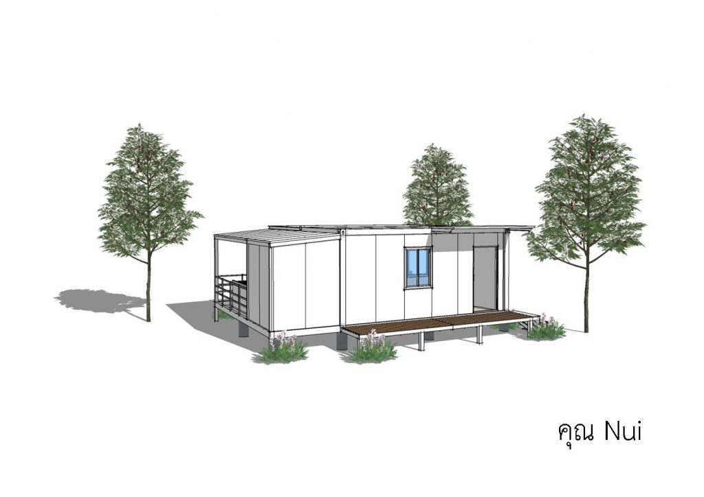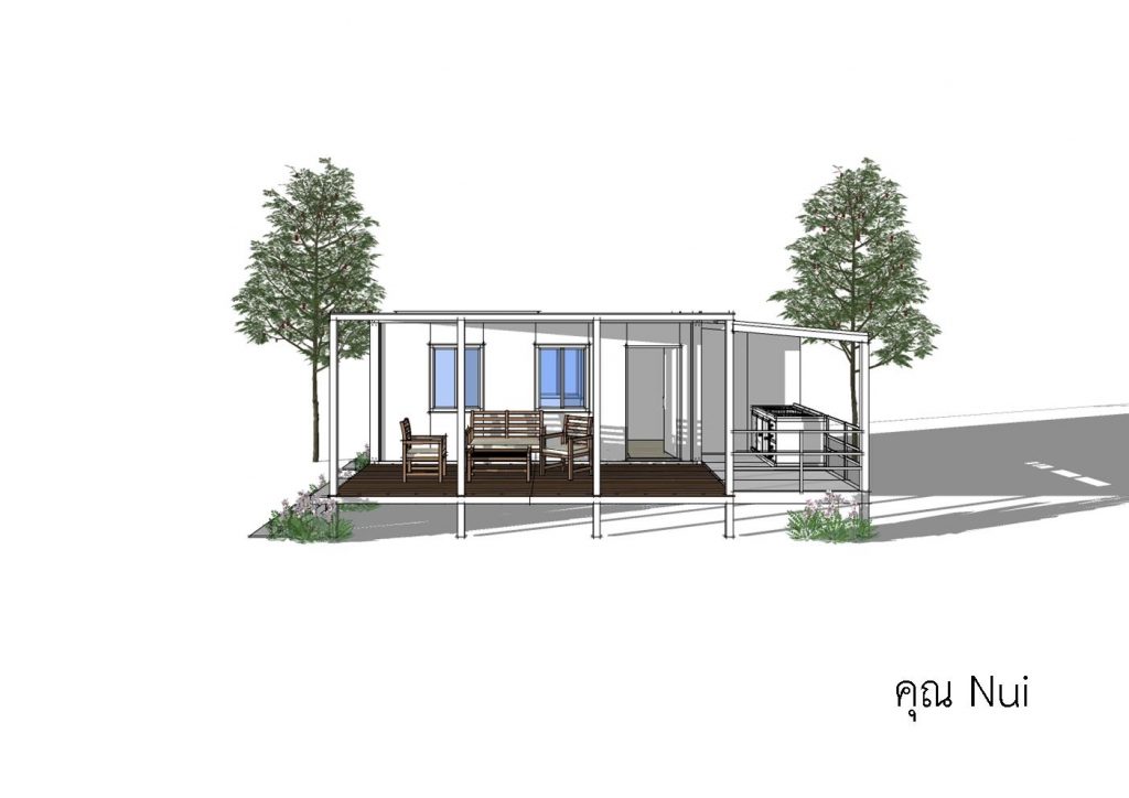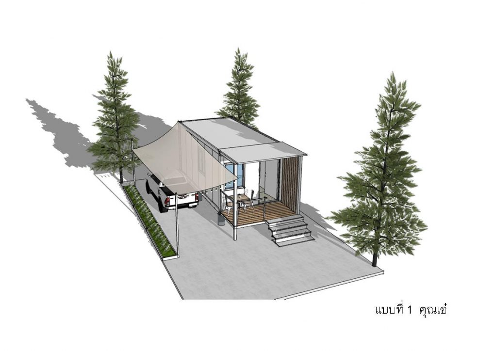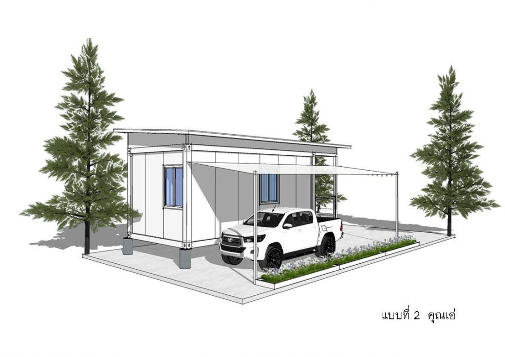 6*3 มีระเบียงด้านหน้า + กันสาด+จอดรถด้านข้าง ยกพื้นสูง50ซม.
